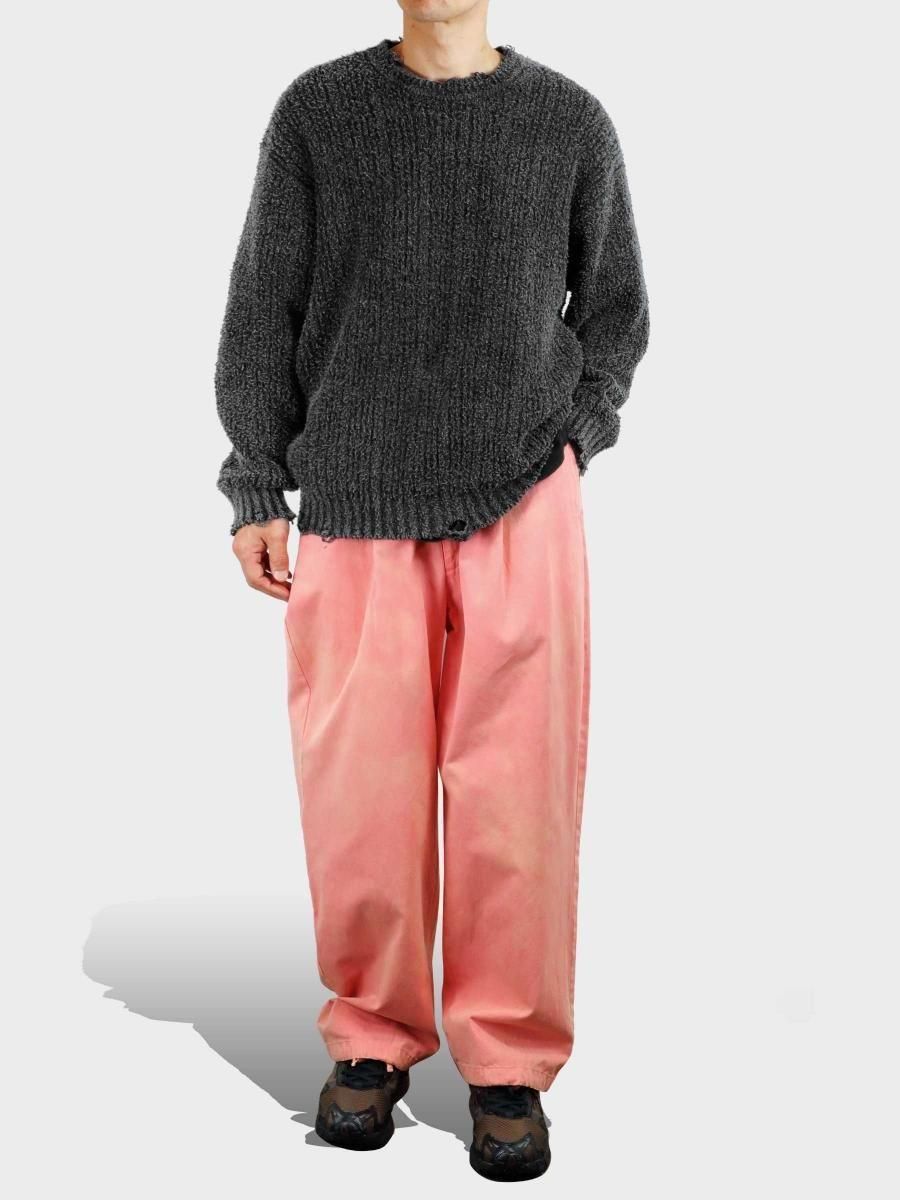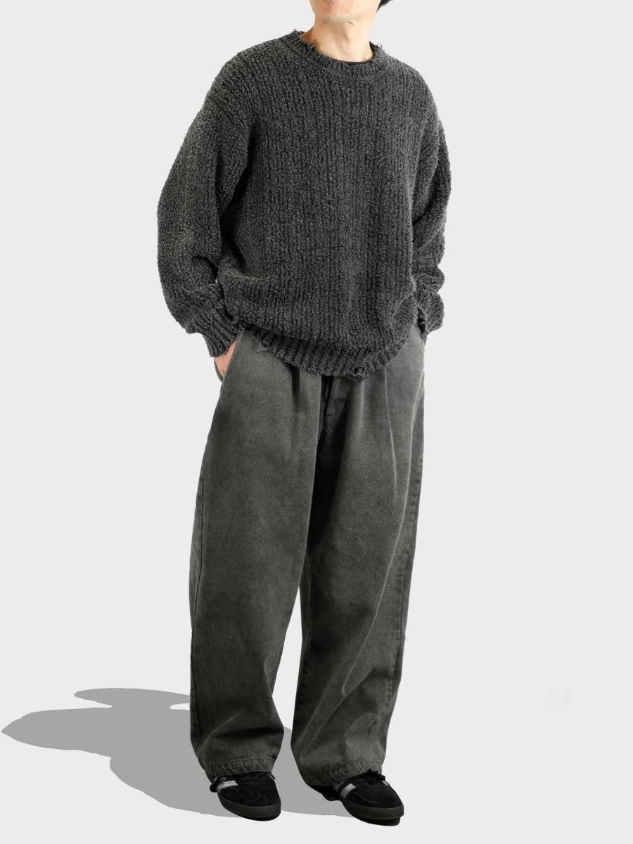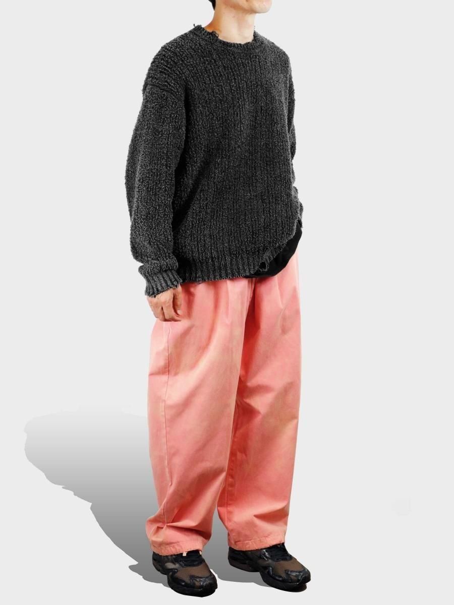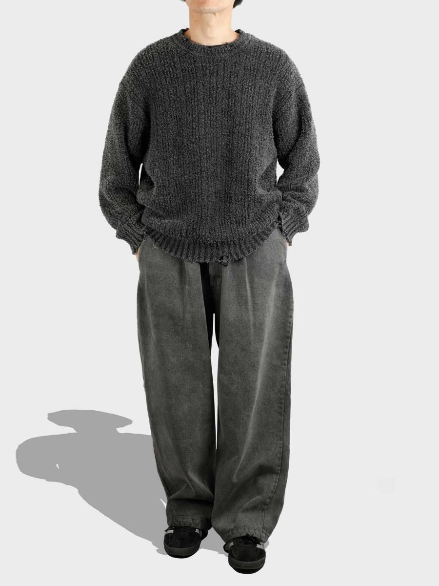 VAINL ARCHIVEのコットンを使用し加工が施されたクルーネックニットになります。 編みの段階で設定を変更し、着古したかのような穴が再現されております。製品後に染め上げ、さらに洗いをかけることで独特の風合いを持たせてられております。身幅を広く、着丈をやや短めに設定されたボックス型の丸みを帯びたルーズシルエットに仕上げられております。 MATERIAL : COTTON 100% COLOR : BLACK size S : 着丈60.0cm / 身幅60.0cm / 肩幅56.0cm / 袖丈55.0cm size M : 着丈62.0cm / 身幅62.0cm / 肩幅58.0cm / 袖丈56.0cm size L : 着丈64.0cm / 身幅64.0cm / 肩幅60.0cm / 袖丈58.0cm MODEL : 身長172cm / 体重60kg / 着用サイズ M WASHING : MADE IN JAPAN