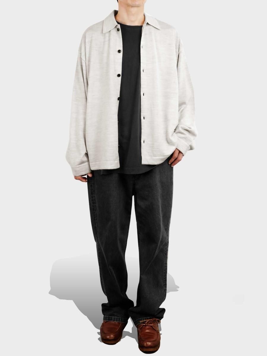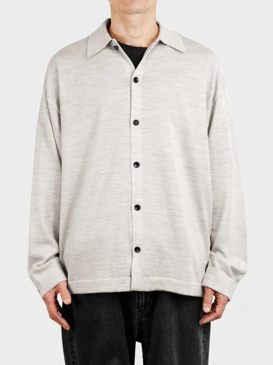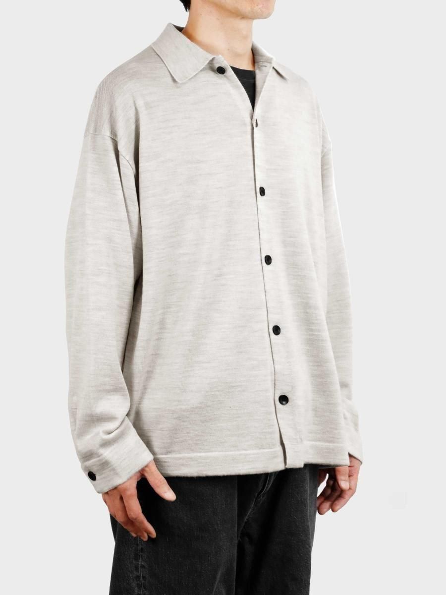 VAINL ARCHIVEのウールニットを使用したシャツカーディガンになります。 柔らかく滑らかなウールニットを使用しております。シャツをイメージソースに、カーディガンの要素も掛け合わせられております。裾はリブを設けず、袖はカフス仕様にて制作されております。身幅を広め、着丈がやや短めのルーズシルエットに設定されております。 MATERIAL : WOOL 100% COLOR : IVORY size S : 着丈68.0cm / 身幅58.0cm / 肩幅58.0cm / 袖丈58.0cm size M : 着丈70.0cm / 身幅60.0cm / 肩幅60.0cm / 袖丈60.0cm size L : 着丈72.0cm / 身幅62.0cm / 肩幅62.0cm / 袖丈62.0cm MODEL : 身長172cm / 体重60kg / 着用サイズ M WASHING : MADE IN JAPAN
