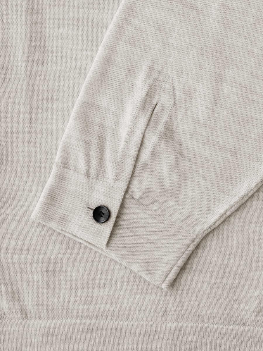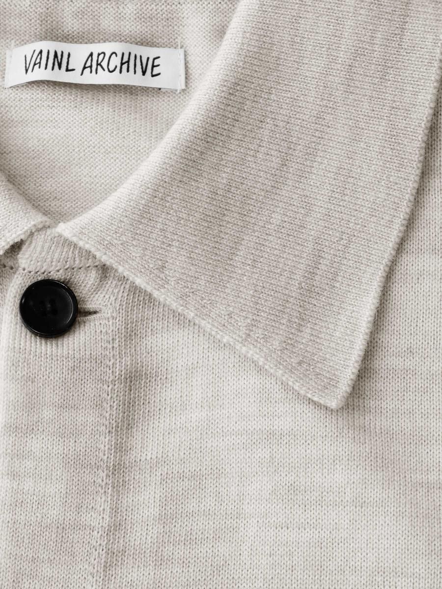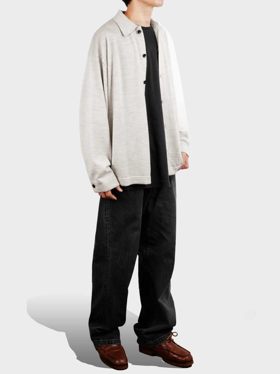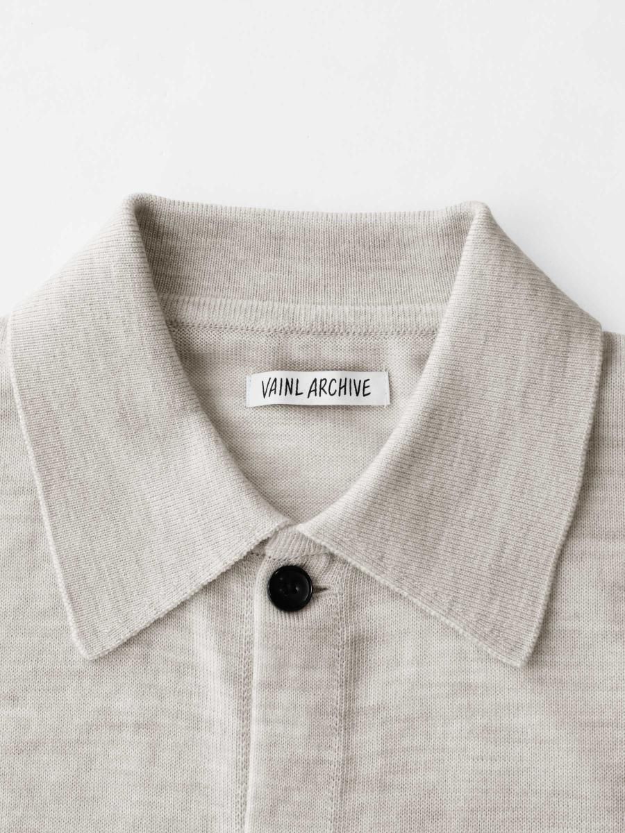 VAINL ARCHIVEのウールニットを使用したシャツカーディガンになります。 柔らかく滑らかなウールニットを使用しております。シャツをイメージソースに、カーディガンの要素も掛け合わせられております。裾はリブを設けず、袖はカフス仕様にて制作されております。身幅を広め、着丈がやや短めのルーズシルエットに設定されております。 MATERIAL : WOOL 100% COLOR : IVORY size S : 着丈68.0cm / 身幅58.0cm / 肩幅58.0cm / 袖丈58.0cm size M : 着丈70.0cm / 身幅60.0cm / 肩幅60.0cm / 袖丈60.0cm size L : 着丈72.0cm / 身幅62.0cm / 肩幅62.0cm / 袖丈62.0cm MODEL : 身長172cm / 体重60kg / 着用サイズ M WASHING : MADE IN JAPAN