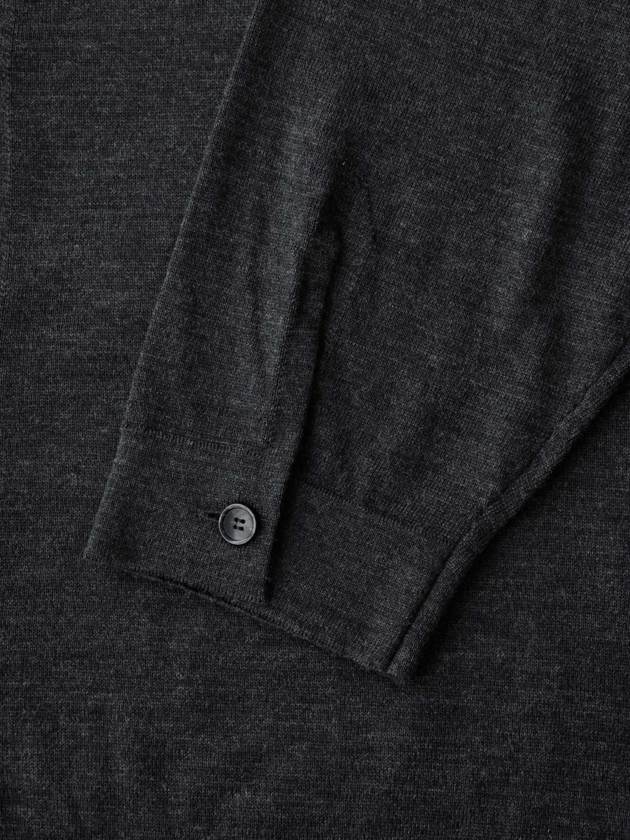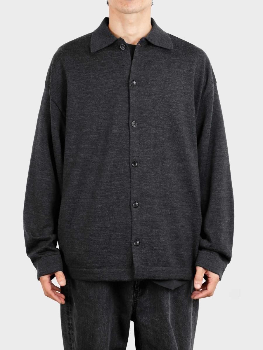 VAINL ARCHIVEのウールニットを使用したシャツカーディガンになります。 柔らかく滑らかなウールニットを使用しております。シャツをイメージソースに、カーディガンの要素も掛け合わせられております。裾はリブを設けず、袖はカフス仕様にて制作されております。身幅を広め、着丈がやや短めのルーズシルエットに設定されております。 MATERIAL : WOOL 100% COLOR : CHARCOAL size S : 着丈68.0cm / 身幅58.0cm / 肩幅58.0cm / 袖丈58.0cm size M : 着丈70.0cm / 身幅60.0cm / 肩幅60.0cm / 袖丈60.0cm size L : 着丈72.0cm / 身幅62.0cm / 肩幅62.0cm / 袖丈62.0cm MODEL : 身長172cm / 体重60kg / 着用サイズ M WASHING : MADE IN JAPAN