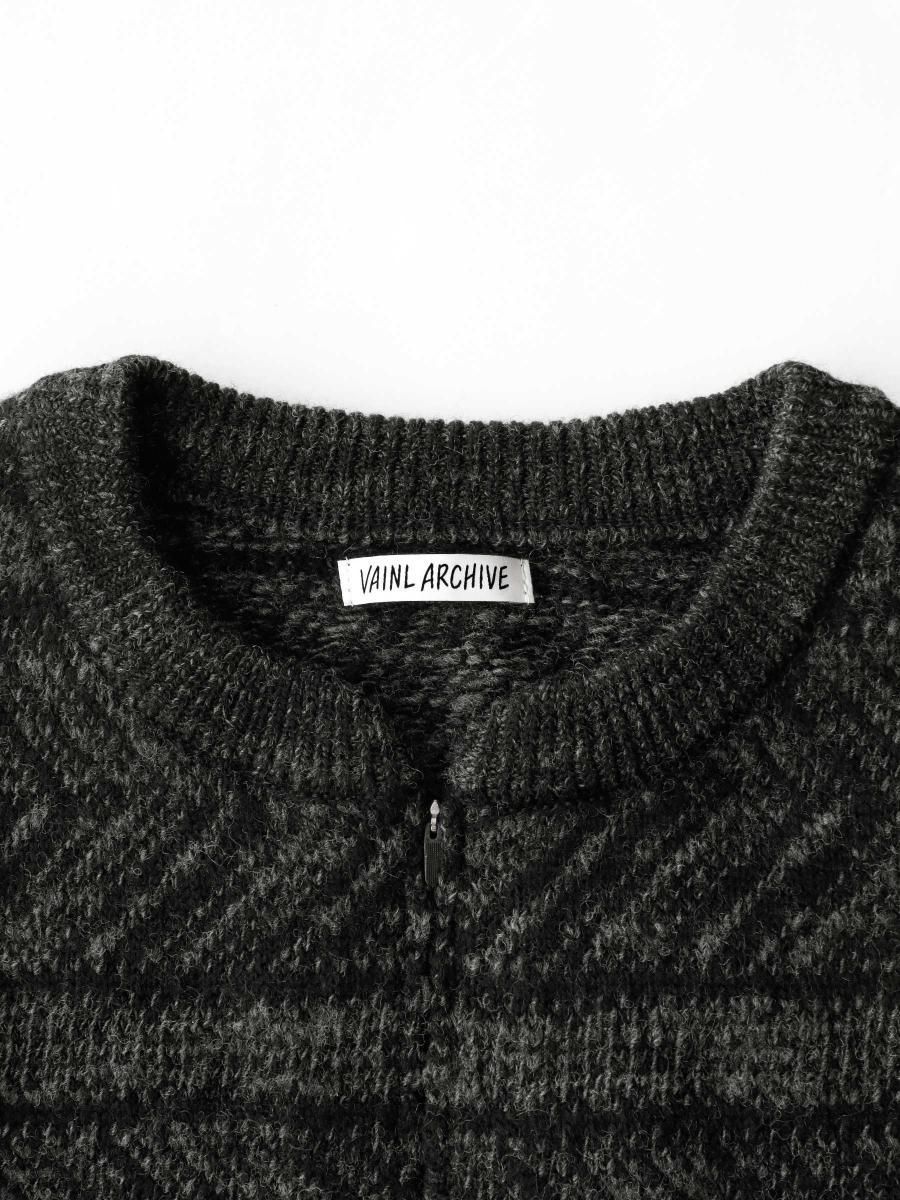 VAINL ARCHIVEのオリジナルテキスタイルを使用したハーフジップ仕様のニットになります。