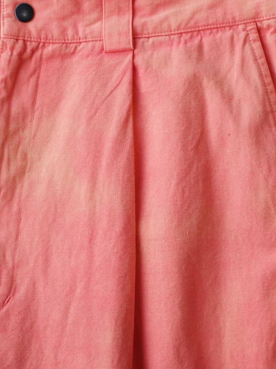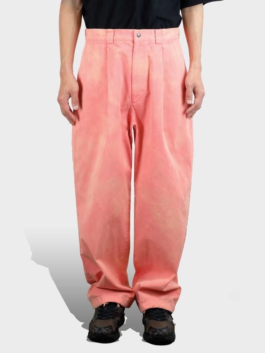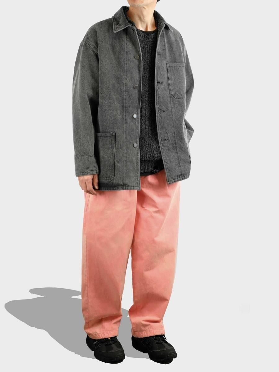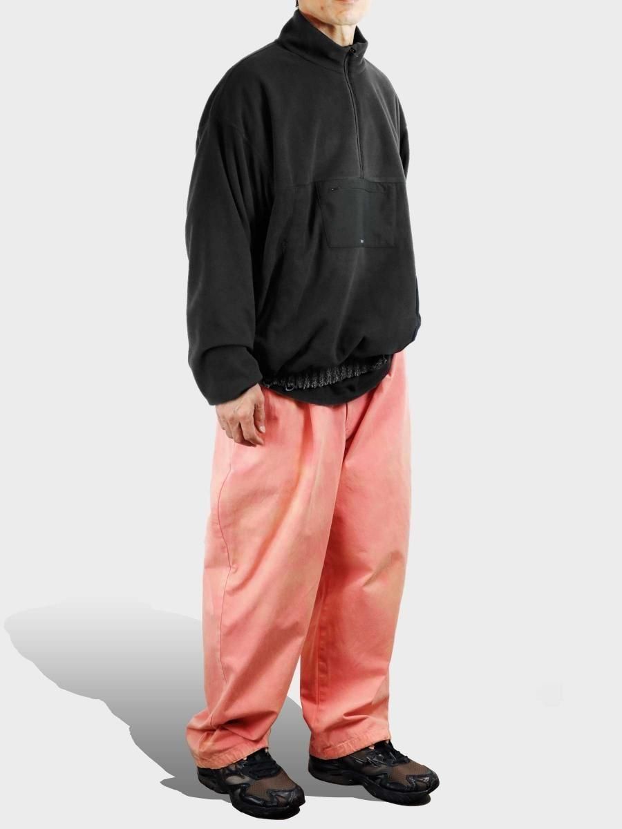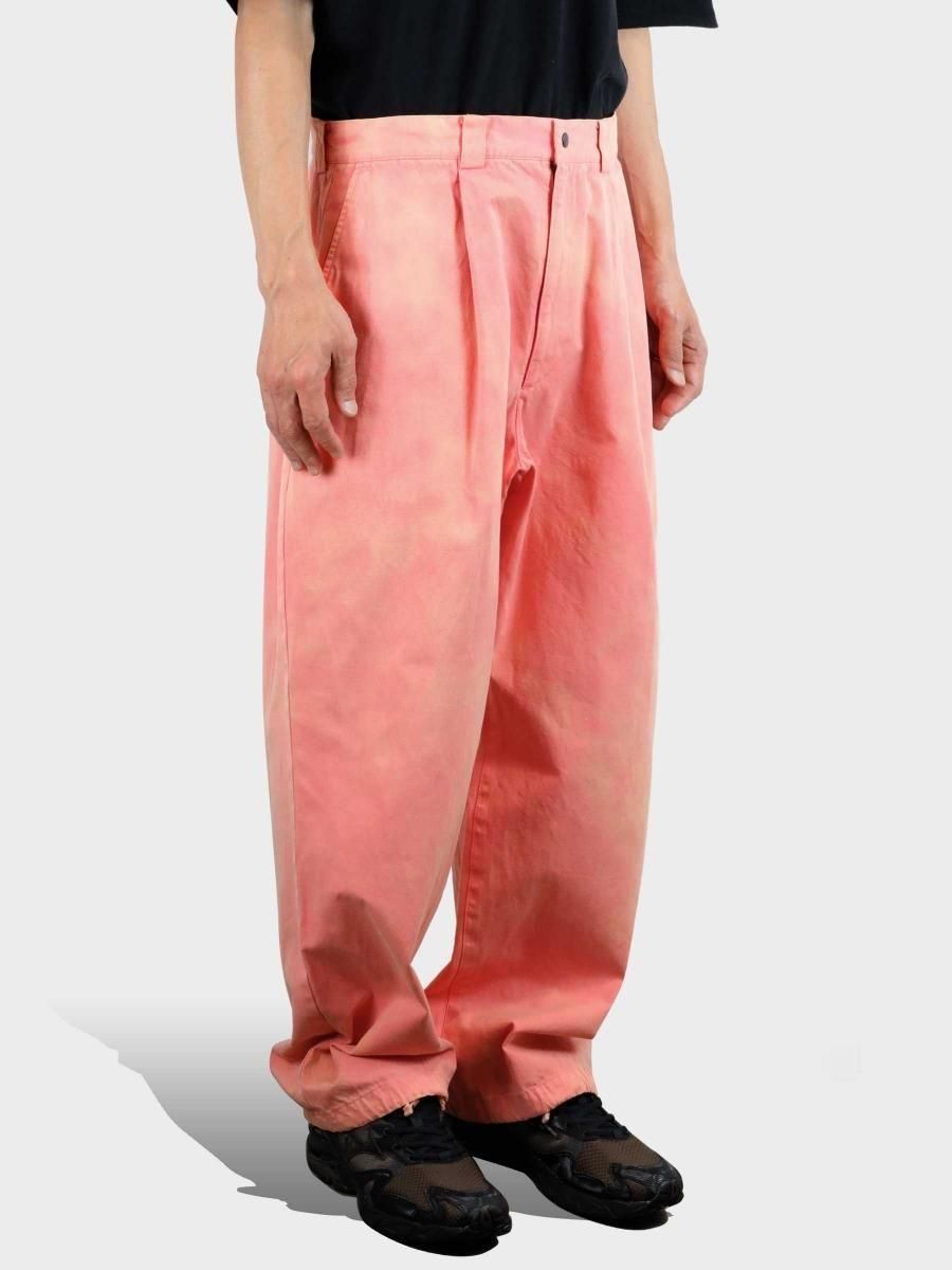 VAINL ARCHIVEのコットンのミリタリーウェザーを使用したワイドパンツになります。 ハリとコシを持たせた高密度のミリタリーウェザー生地を使用し、製品染め後に特殊加工が施されております。独特の起毛したフェード感と風合いにて制作されております。腰回りから膨らみを持たせ、ややテーパードされたワイドシルエットに、裾をスピンドル仕様にて制作されております。スピンドルの開閉によりシルエットが調整可能となります。 MATERIAL : COTTON 100% COLOR : PEACH size S : ウエスト82.0cm / 全長102.0cm / 股上43.0cm / 股下69.0cm / ヒップ124.0cm / もも周り75.0cm / 裾幅49.0cm size M : ウエスト84.0cm / 全長104.0cm / 股上44.0cm / 股下70.0cm / ヒップ126.0cm / もも周り76.0cm / 裾幅50.0cm size L : ウエスト86.0cm / 全長106.0cm / 股上45.0cm / 股下68.0cm / ヒップ128.0cm / もも周り77.0cm / 裾幅51.0cm MODEL : 身長172cm / 体重55kg / 着用サイズ M WASHING : MADE IN JAPAN