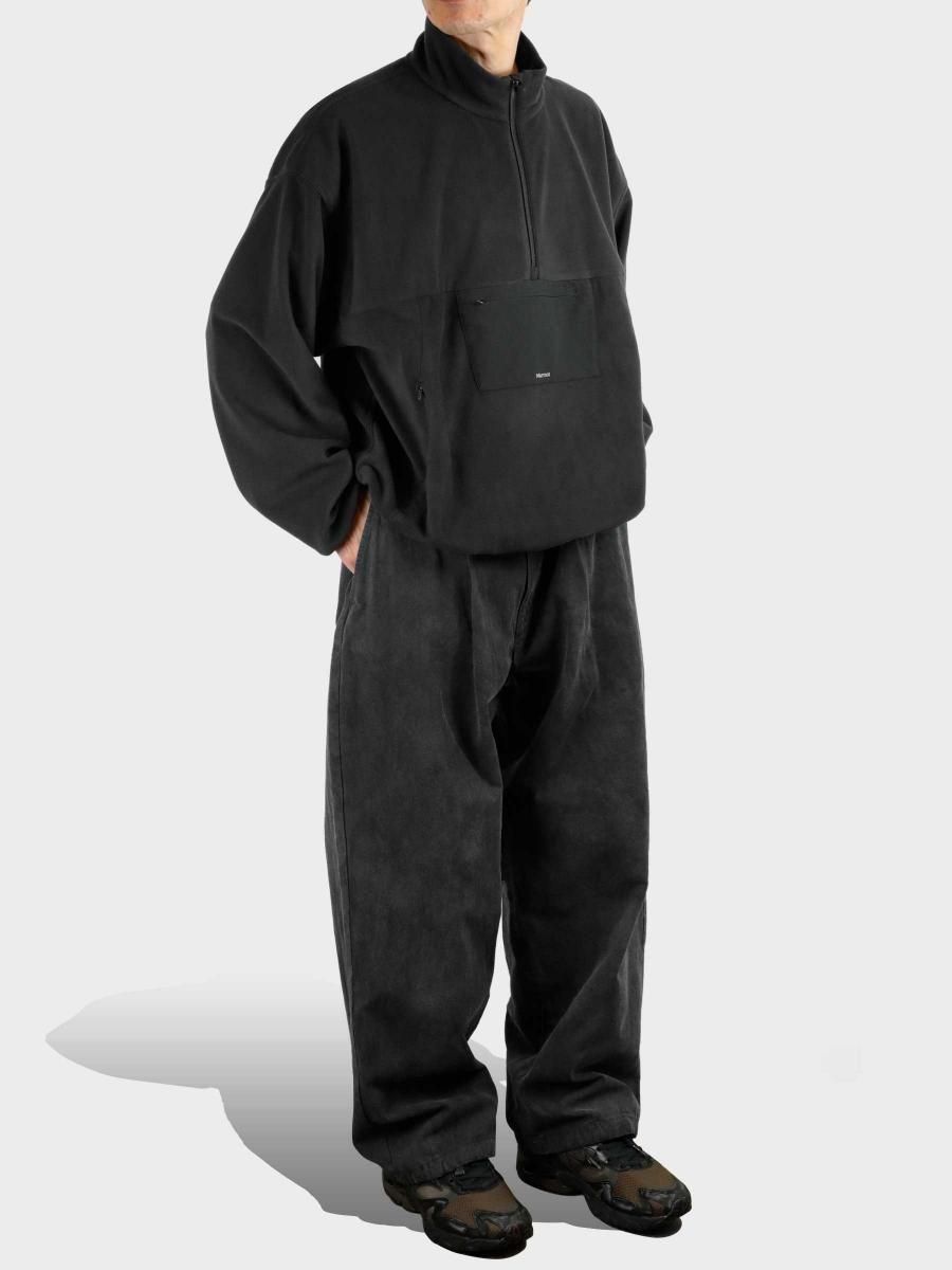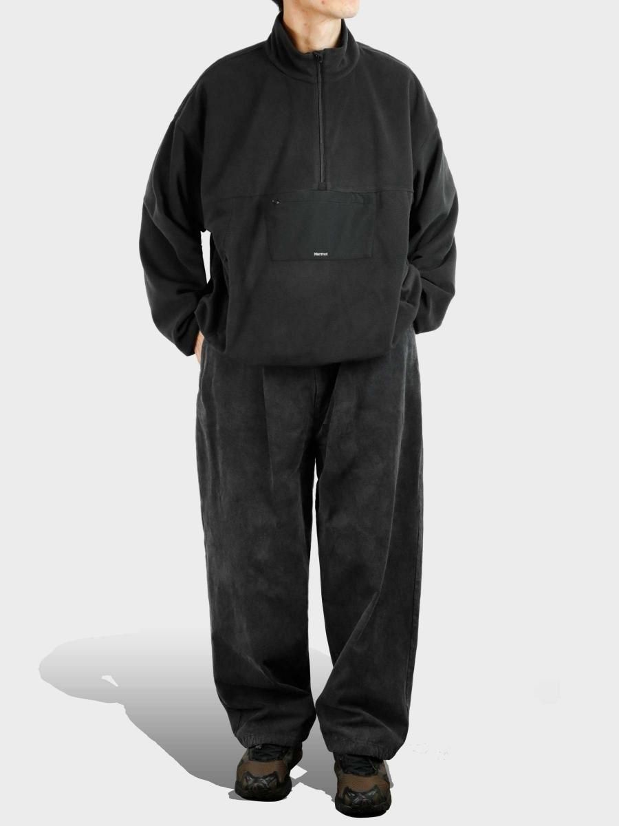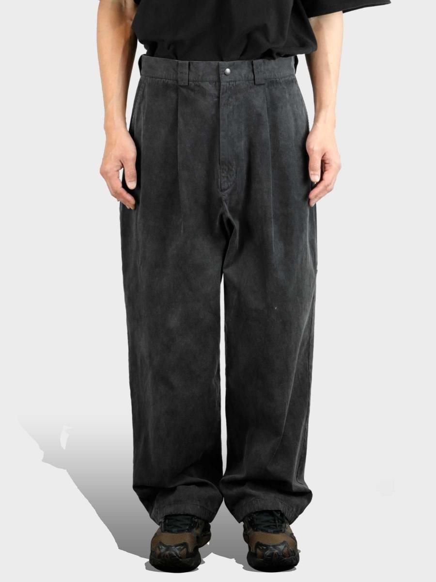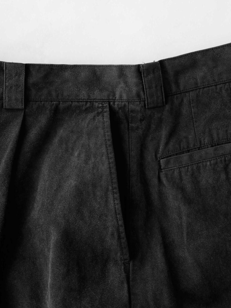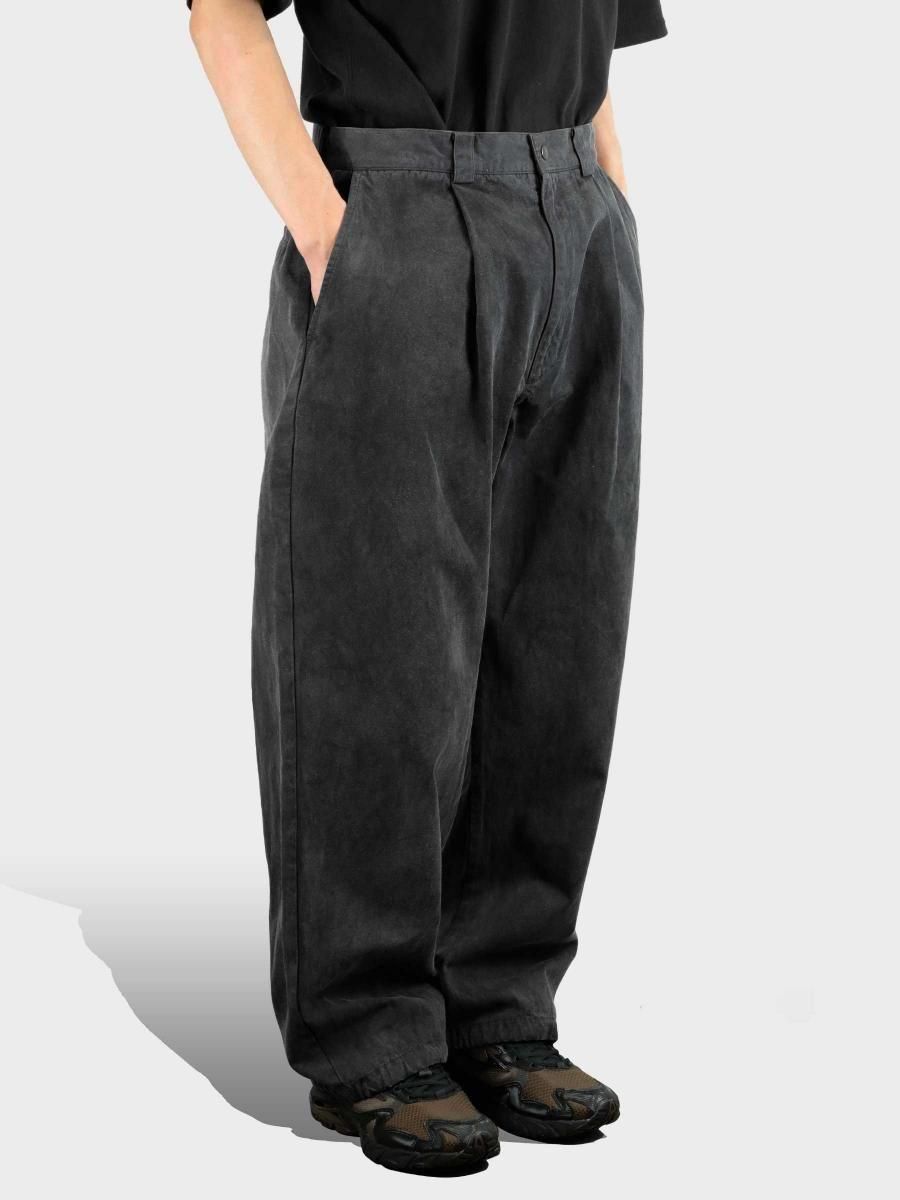 VAINL ARCHIVEのコットンのミリタリーウェザーを使用したワイドパンツになります。 ハリとコシを持たせた高密度のミリタリーウェザー生地を使用し、製品染め後に特殊加工が施されております。独特の起毛したフェード感と風合いにて制作されております。腰回りから膨らみを持たせ、ややテーパードされたワイドシルエットに、裾をスピンドル仕様にて制作されております。スピンドルの開閉によりシルエットが調整可能となります。 MATERIAL : COTTON 100% COLOR : BLACK size S : ウエスト82.0cm / 全長102.0cm / 股上42.0cm / 股下69.0cm / ヒップ124.0cm / もも周り75.0cm / 裾幅49.0cm size M : ウエスト84.0cm / 全長104.0cm / 股上43.0cm / 股下70.0cm / ヒップ126.0cm / もも周り76.0cm / 裾幅50.0cm size L : ウエスト86.0cm / 全長106.0cm / 股上44.0cm / 股下68.0cm / ヒップ128.0cm / もも周り77.0cm / 裾幅51.0cm MODEL : 身長172cm / 体重55kg / 着用サイズ M WASHING : MADE IN JAPAN