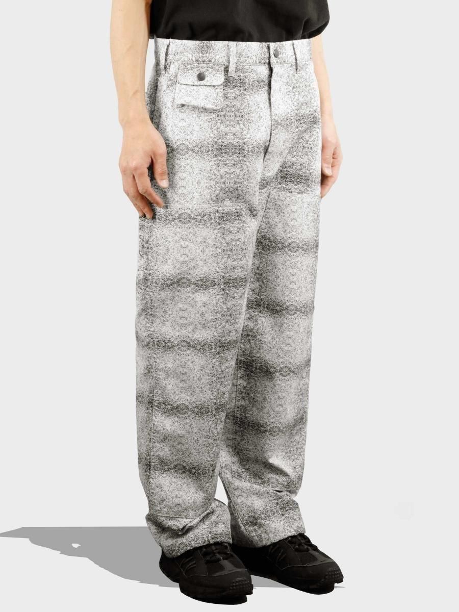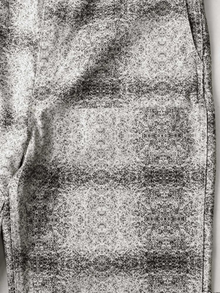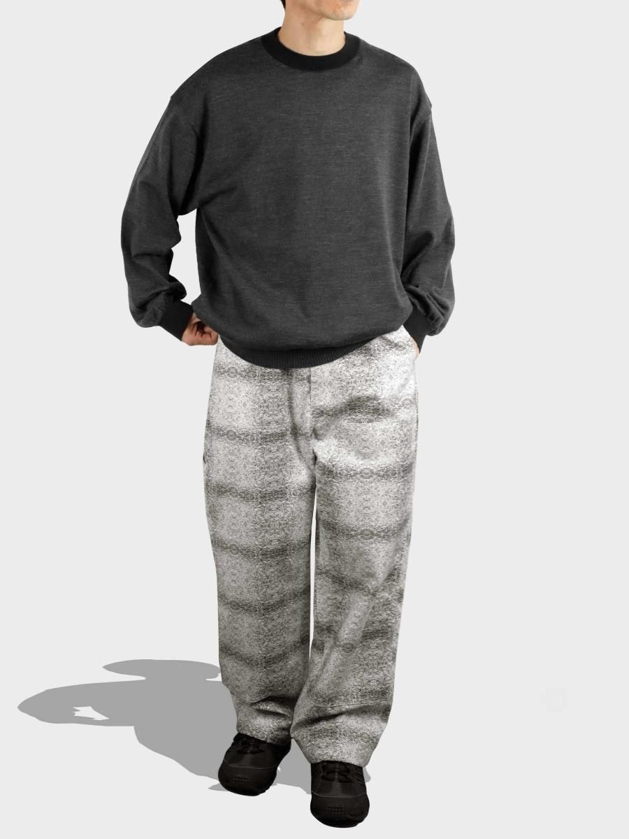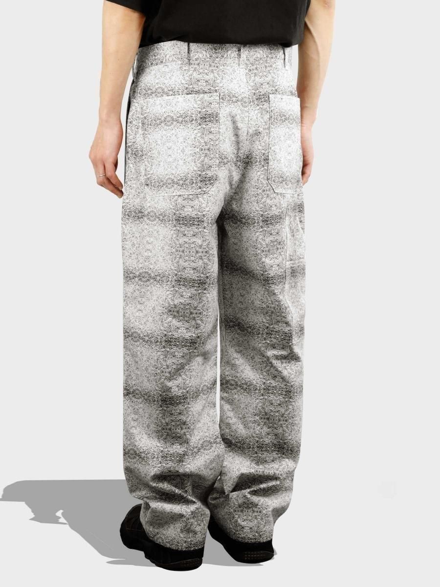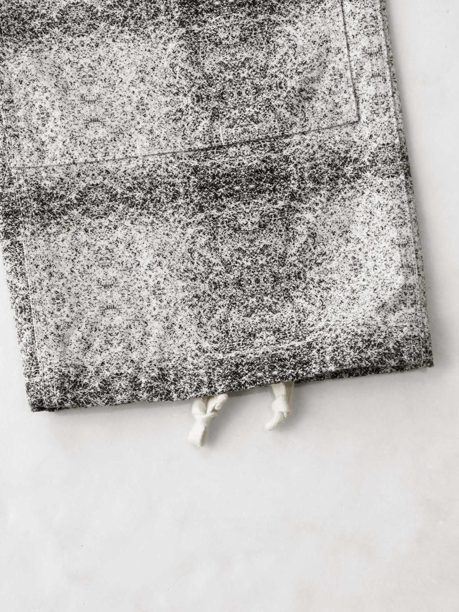 VAINL ARCHIVEのダック生地にクラッシュプリントが施されたペインターパンツになります。 オリジナルの目面の細かく綺麗なダック生地にクラッシュプリントを施した後、製品洗いにてオリジナルテキスタイルに制作されております。フロントウエスト部にポケットを設け、ワークのペインターパンツベースに制作されております。腰回りから膨らみを持たせ、ややテーパードされたワイドシルエットになります。同素材のAZIZ-Cとセットアップでの着用が可能となります。 MATERIAL : COTTON 100% COLOR : CRASH PRINT size S : ウエスト83.0cm / 全長104.0cm / 股上41.0cm / 股下65.0cm / ヒップ106.0cm / もも周り67.0cm / 裾幅49.0cm size M : ウエスト85.0cm / 全長106.0cm / 股上42.0cm / 股下66.0cm / ヒップ108.0cm / もも周り68.0cm / 裾幅50.0cm size L : ウエスト87.0cm / 全長108.0cm / 股上43.0cm / 股下67.0cm / ヒップ110.0cm / もも周り69.0cm / 裾幅51.0cm MODEL : 身長172cm / 体重60kg / 着用サイズ M WASHING : MADE IN JAPAN