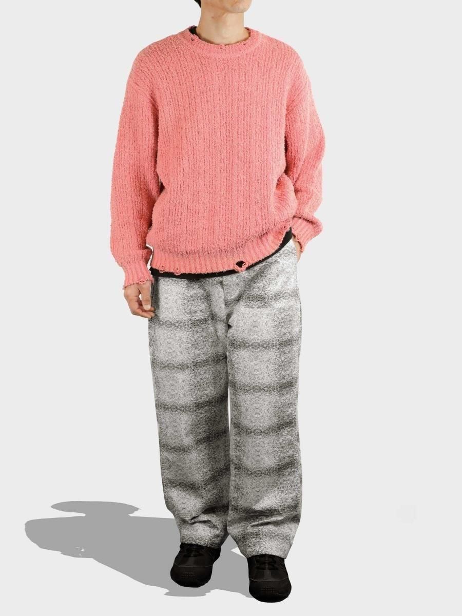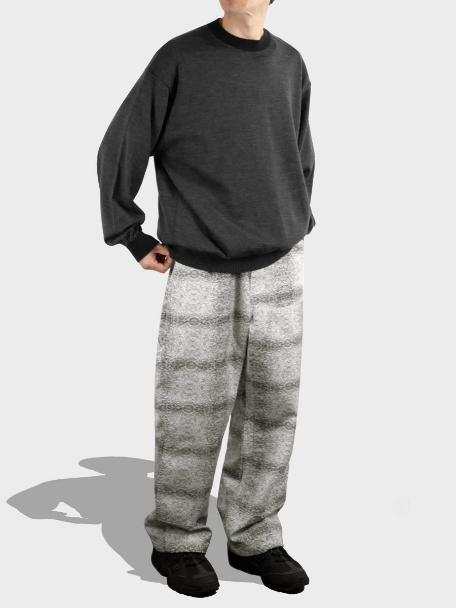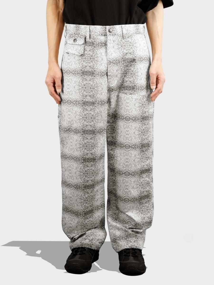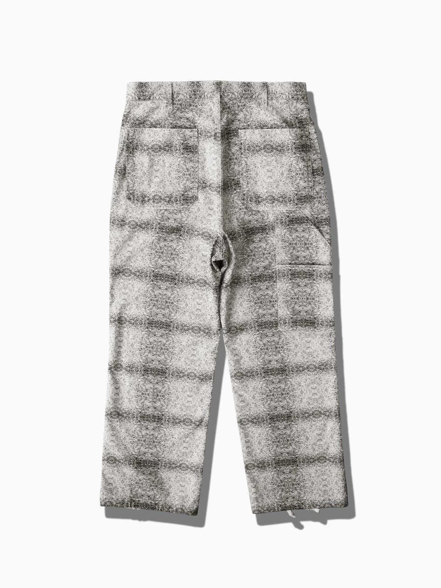 VAINL ARCHIVEのダック生地にクラッシュプリントが施されたペインターパンツになります。 オリジナルの目面の細かく綺麗なダック生地にクラッシュプリントを施した後、製品洗いにてオリジナルテキスタイルに制作されております。フロントウエスト部にポケットを設け、ワークのペインターパンツベースに制作されております。腰回りから膨らみを持たせ、ややテーパードされたワイドシルエットになります。同素材のAZIZ-Cとセットアップでの着用が可能となります。 MATERIAL : COTTON 100% COLOR : CRASH PRINT size S : ウエスト83.0cm / 全長104.0cm / 股上41.0cm / 股下65.0cm / ヒップ106.0cm / もも周り67.0cm / 裾幅49.0cm size M : ウエスト85.0cm / 全長106.0cm / 股上42.0cm / 股下66.0cm / ヒップ108.0cm / もも周り68.0cm / 裾幅50.0cm size L : ウエスト87.0cm / 全長108.0cm / 股上43.0cm / 股下67.0cm / ヒップ110.0cm / もも周り69.0cm / 裾幅51.0cm MODEL : 身長172cm / 体重60kg / 着用サイズ M WASHING : MADE IN JAPAN
